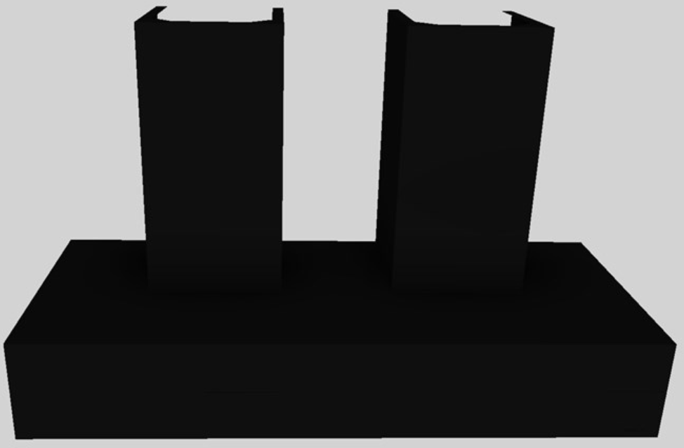Thick rectangle styling. Click on the models for a list of our base model numbers for standard sizes; simply select the model you need, and then specify the finish (painted or stainless steel). Not available in real brass, real copper, or hammered copper. Recommended mounting height 27" above the cooking surface. Shown with matching wall mount duct covers (sold separately), available in standard sizes for 7', 8', and 9' ceiling heights or in custom sizes. All Vent-A-Hood products are suitable for use in damp locations (outdoor applications such as a covered patio) when installed in a GFCI protected branch circuit.